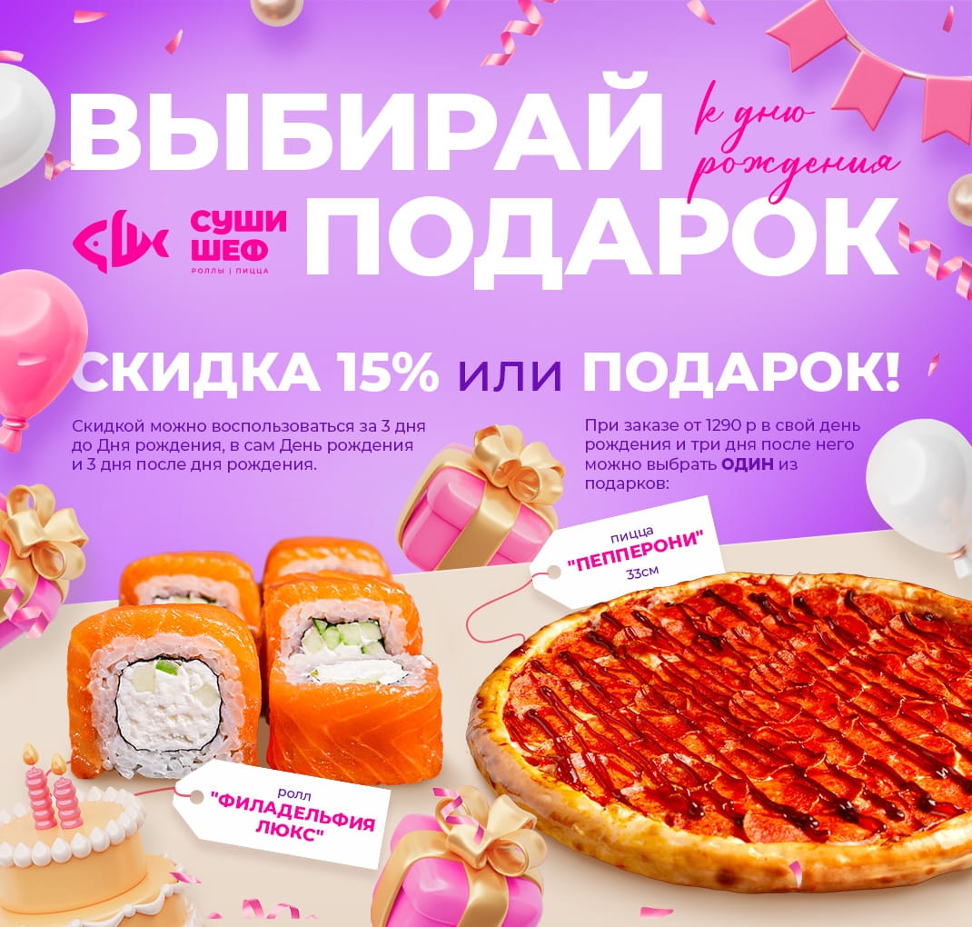 Доступен только один заказ в рамках акции в течение четырёх дней (в День Рождения и 3 дня после)